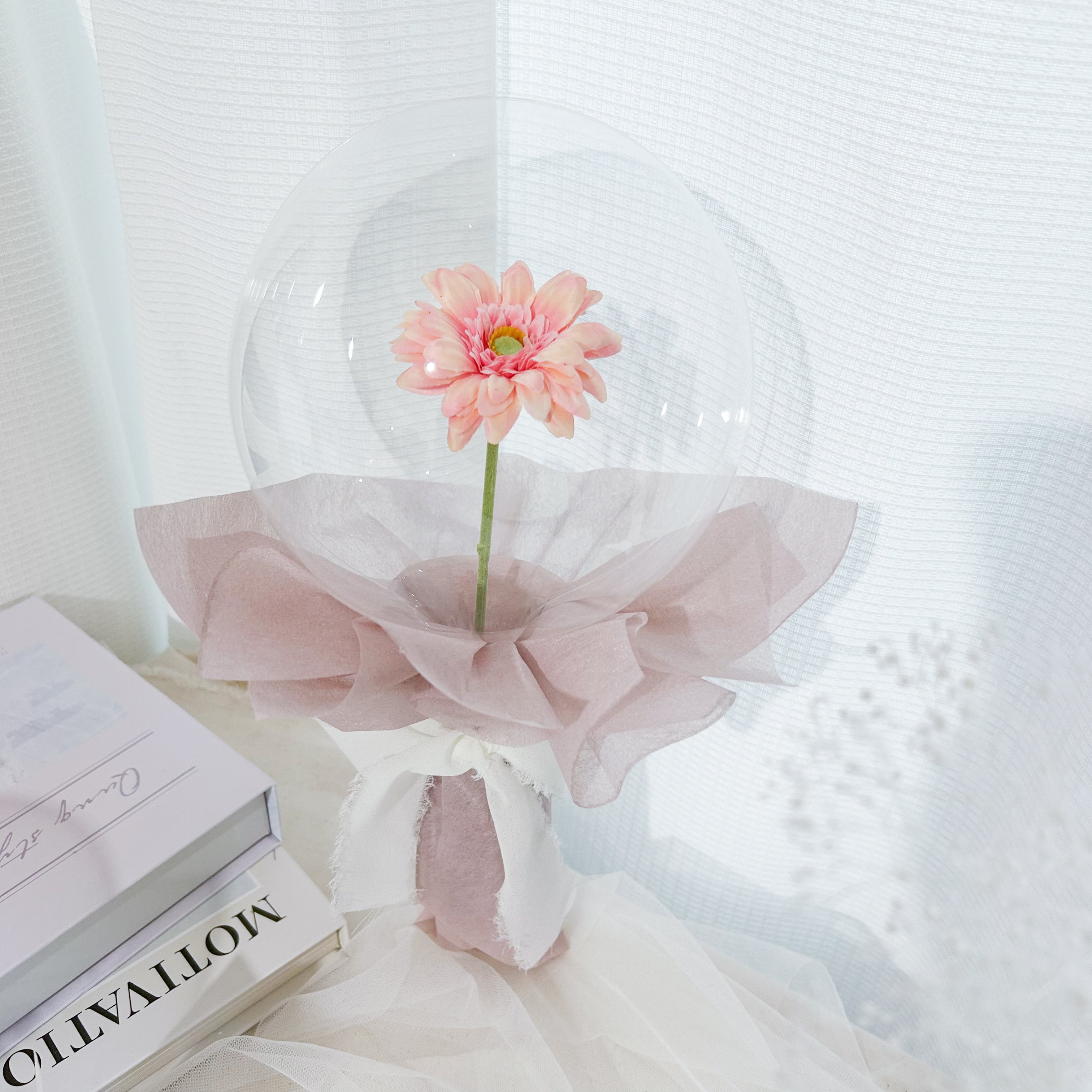 セレクトしており、しゃぼん玉のような特殊なバルーンで包みました。
