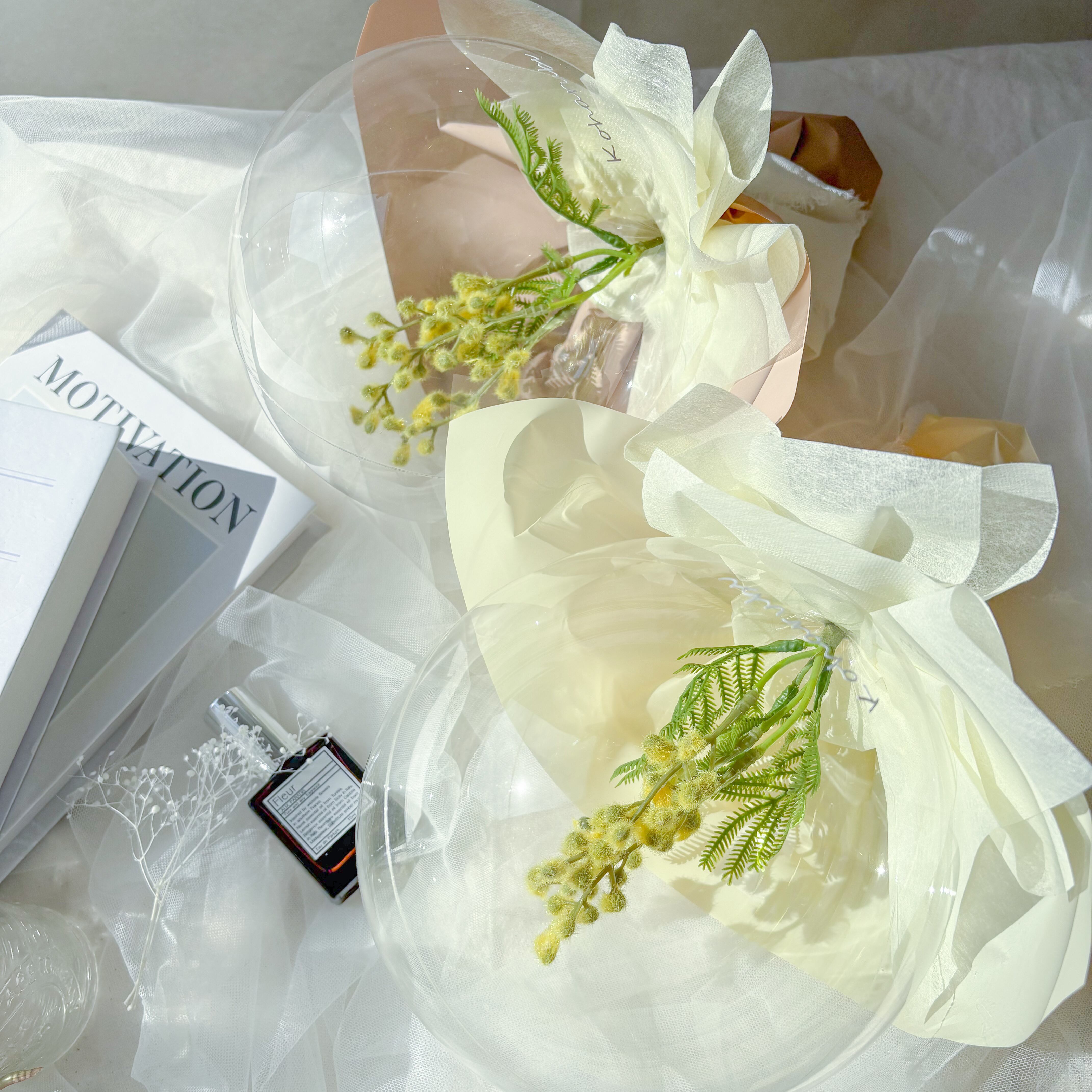 セレクトしており、しゃぼん玉のような特殊なバルーンで包みました。
